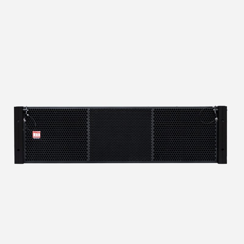 Low frequency section employs dual 12 inch high excursion cone drivers mounted in bass reflex configuration to ensure powerful low frequency performance. Specially developed pairs of 8 inch mid drivers and 1.4 inch neodymium HF drivers are coupled to a large proprietary phase corrected MF/HF horn to ensure accurate summation, smooth frequency response, and precise horizontal dispersion throughout the MF/HF band. Dual 1.4 inch exit neodymium high performance compression drivers are mounted on to two individual high frequency plane wave converters. The resultant planer wave is then coupled to the complex mid-high horn to ensure precise high frequency reproduction, and even arraying in all situations.